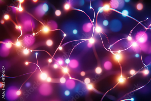 © Tiravad, Obraz premium Abstract glowing light paths create interconnected network of colors