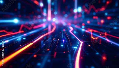 © VRAYVENUS, Obraz premium Abstract glowing lights background with glowing energy and digital wave effect , colorful moving lights