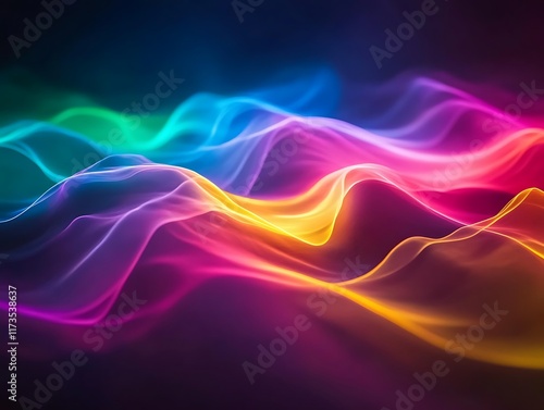 © Rumi, Naklejka premium Abstract Glowing Lights in Vibrant Colors Cascading Against a Dark Background, Perfect for Futuristic and Festive Designs