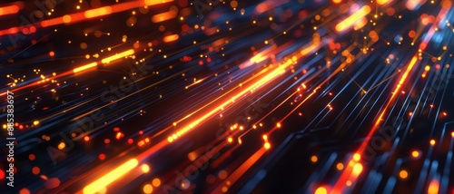 © Marnee, Fototapeta premium Abstract glowing lines, dark theme, ample copy space, tech-inspired background
