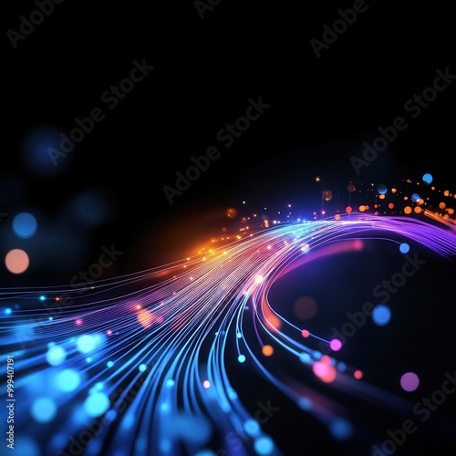 © sa-photo, Obraz premium Abstract glowing lines representing data flow and connectivity, on a black background. Perfect for futuristic tech and innovation concepts.