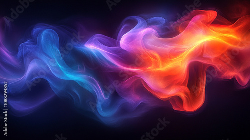 Fototapeta premium Abstract glowing neon wave on a dark background, symbolizing energy, motion, and futuristic technology with fluid lines and vibrant colors creating a dynamic, modern atmosphere