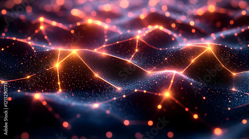 © Sri, Fototapeta premium Abstract glowing network background with flowing energy and data connections