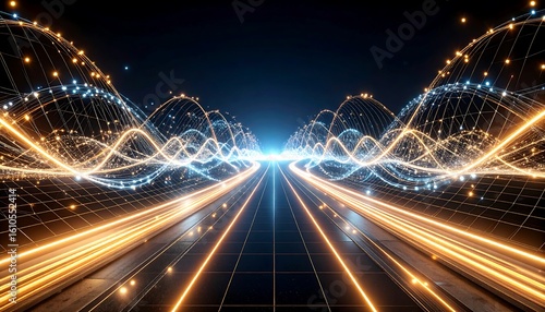 Fototapeta premium Abstract Glowing Network Lines and Data Streams in Futuristic Style