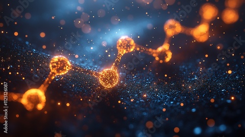 Fototapeta premium Abstract glowing orange and blue molecule chain.