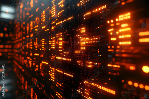 © Adi, Obraz premium Abstract Glowing Orange Data Stream on Dark Background