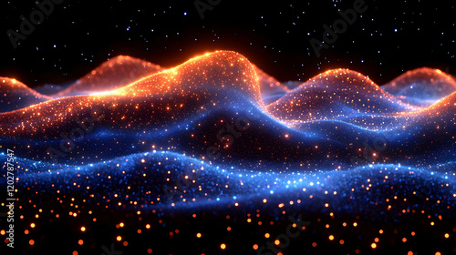© Adi, Obraz premium Abstract Glowing Particle Wave Background Texture