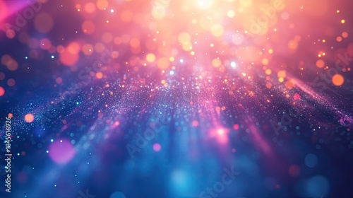 Fototapeta premium Abstract glowing particles and sparkling light creating a vibrant bokeh effect, presenting a dynamic background with shifting colors and ethereal light rays