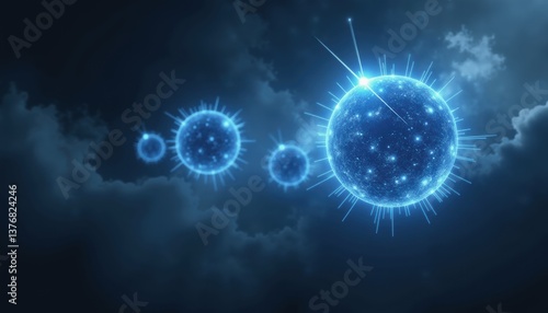 Obraz premium Abstract glowing particles floating in dark clouds