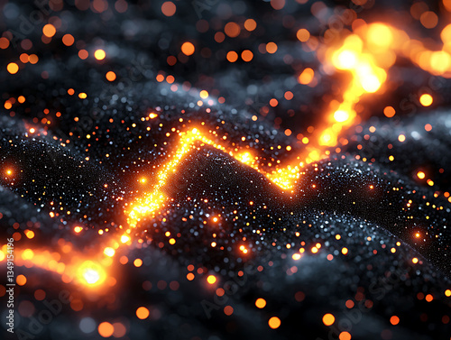 © Olena, Fototapeta premium Abstract glowing particles forming a dynamic path across a dark, textured surface. Ideal for technology, energy, or futuristic designs.