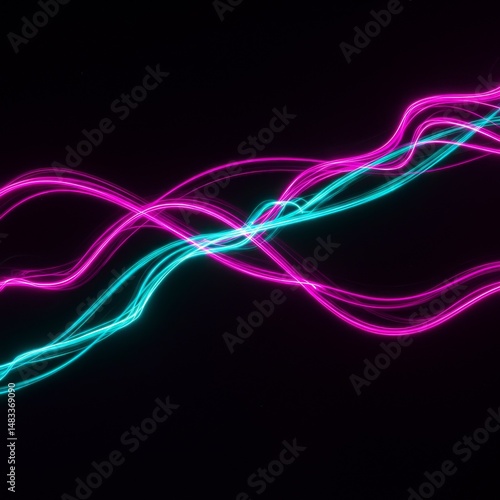 © DanadyaksaDen, Naklejka premium Abstract Glowing Pink and Teal Waves on Black Background