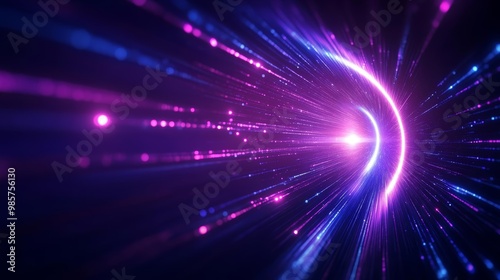 Naklejka premium Abstract glowing purple and blue light trails on dark background, futuristic...