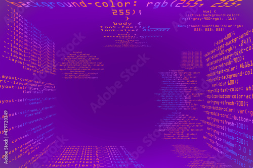 © Who is Danny, Obraz premium Abstract glowing purple coding programming background with mock up place. Big data and code concept. 3D Rendering.