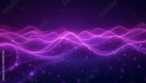 © Tatyana, Obraz premium Abstract glowing purple waves with particles.