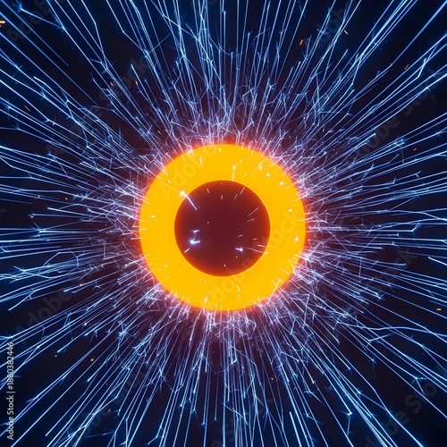 © Divyesh, Obraz premium Abstract glowing ring with radiating lines creates a visually striking composition