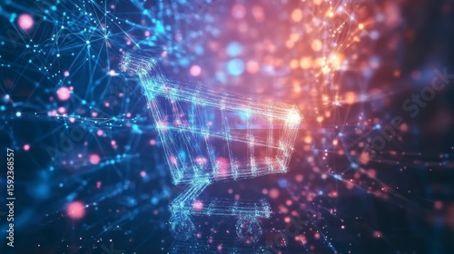 Obraz premium Abstract glowing shopping cart in digital network.