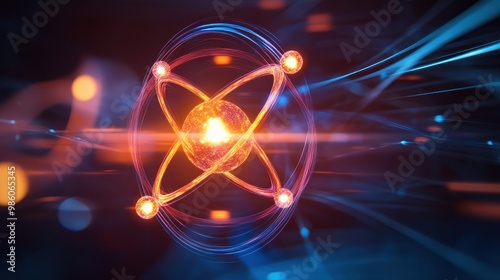 Fototapeta premium Abstract glowing sphere with rings of light, surrounded by streaks of light...