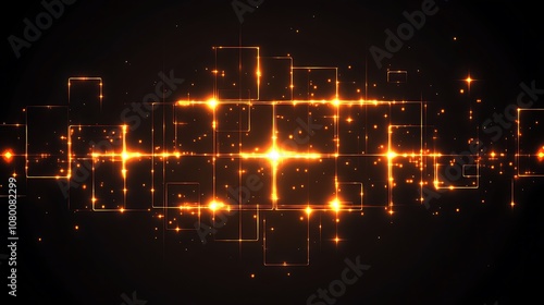 Fototapeta premium Abstract glowing square tiles forming a geometric grid pattern on a dark background.