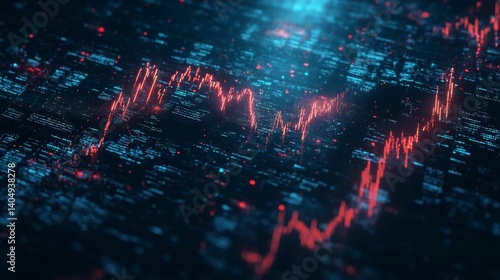 Fototapeta premium Abstract glowing stock market data visualization with red and blue data...