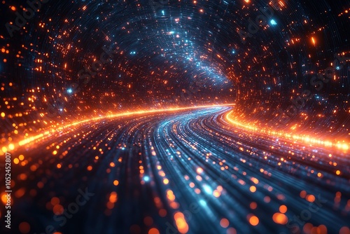 © CahPapat, Obraz premium Abstract glowing tunnel with a curved path.