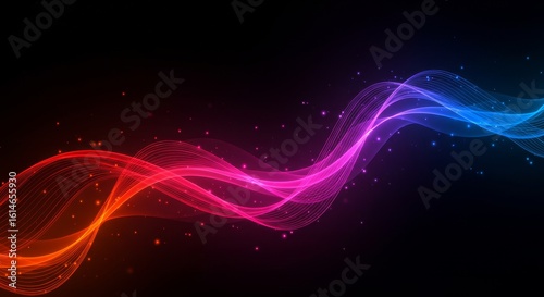 © Smallde, Fototapeta premium Abstract Glowing Wave Design with Sparkles on Dark Background