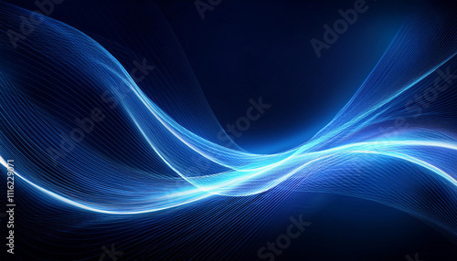 Obraz premium Abstract glowing wave lines on dark blue background