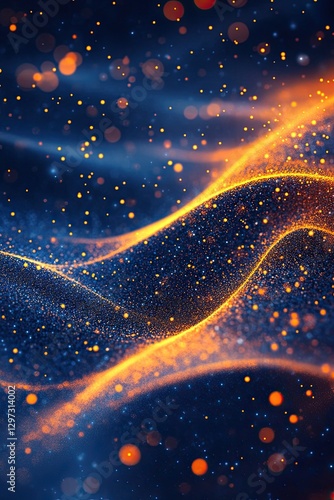 © Ksu_Sha, Obraz premium Abstract glowing wave of golden and blue particles with dynamic motion and bokeh light effect