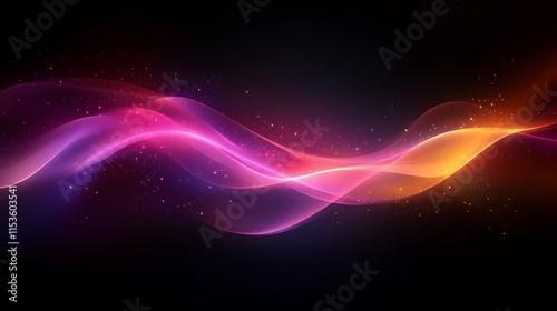 © Wiwi, Obraz premium Abstract glowing wave with pink, orange, and purple hues on a black background.