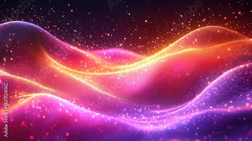 Fototapeta premium Abstract glowing waves, cosmic particles, dark background, digital art,...