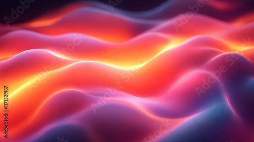 © wisnu, Fototapeta premium Abstract glowing waves, vibrant red and orange colors.