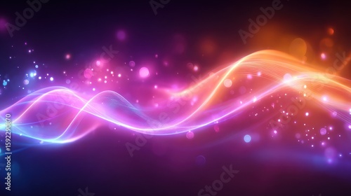 © Alfath, Fototapeta premium Abstract glowing wavy lines against a dark background with sparkling light effects