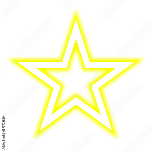 © Emre Akkoyun, Obraz premium Abstract glowing yellow star shape on transparent background png shiny neon star, bright frame design element