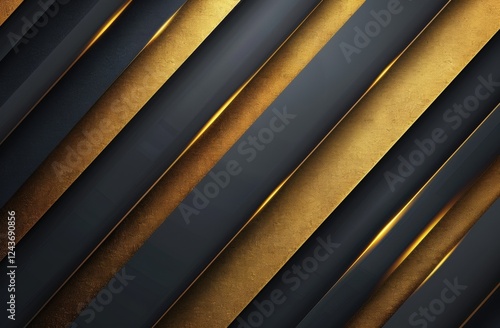 © Riz, Obraz premium Abstract Gold and Black Diagonal Lines Texture Background