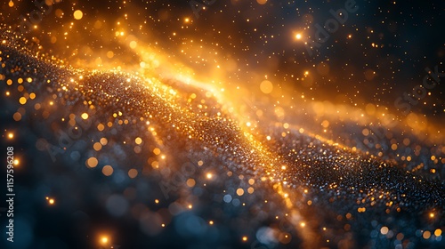 © Purnomo adi, Fototapeta premium Abstract gold and blue glittering particles wave, dark background.