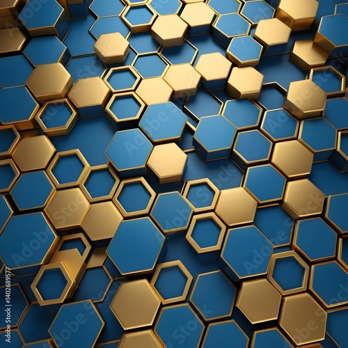 Obraz premium Abstract Gold and Blue Hexagon Pattern