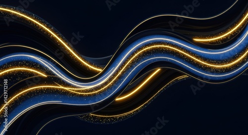 Obraz premium Abstract Gold and Blue Waves: Dynamic 3D Render of Flowing, Glittering Lines