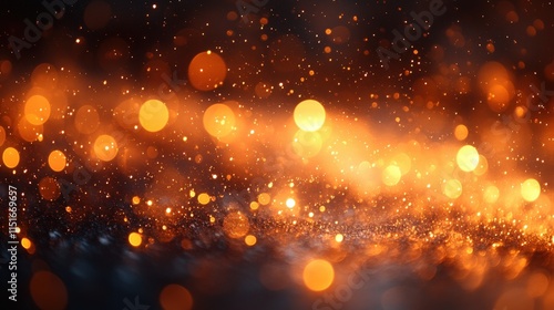 Fototapeta premium Abstract gold and orange bokeh lights on dark background.
