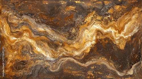 Fototapeta premium Abstract Gold Brown Swirling Acrylic Pour Painting