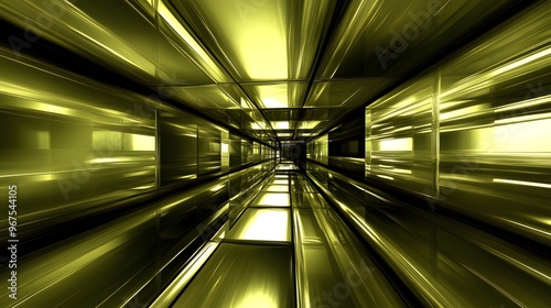 © fledermausstudio, Obraz premium Abstract Gold Corridor Perspective 3D Render