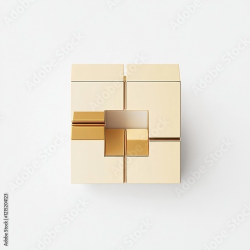 © soBigz, Obraz premium Abstract Gold Cube Puzzle