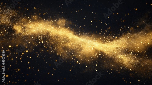 Obraz premium Abstract gold dust explosion on a dark background, creating a dramatic and...