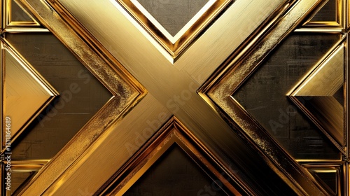 Obraz premium Abstract Gold Geometric X Pattern With Textured Metallic Surfaces