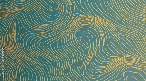 © Younes, Obraz premium Abstract Gold Line Art on Teal Background