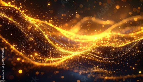 © Ekor, Obraz premium Abstract gold particles flowing in waves