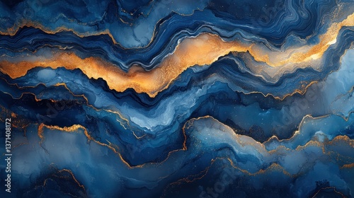 Fototapeta premium Abstract gold veins in dark blue marble design