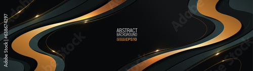 © Sorraya, Fototapeta premium abstract gold wave background, luxury realistic design, curve lines overlap layer shadow gradients space composition for banner, flyer cover, website template
