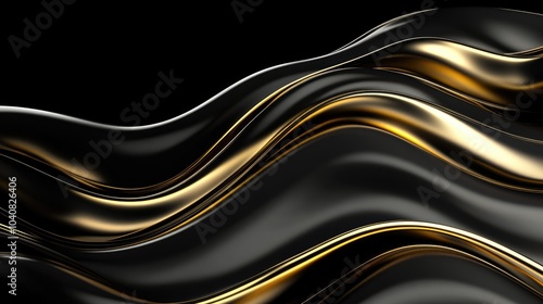 © รุ่งอรุณ ศรีนรสิทธิ์, Obraz premium Abstract Gold Wave Design on Dark Background