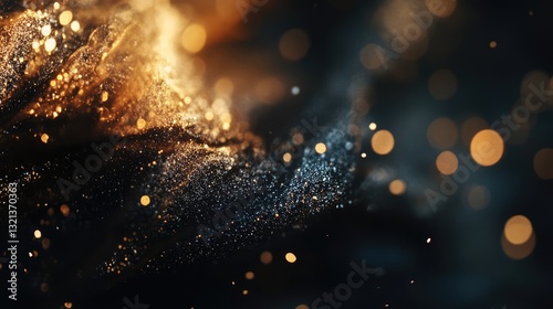 © Arthur, Naklejka premium Abstract golden and black swirling patterns with shimmering particles creating a mystical atmosphere