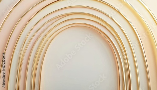 © Riz, Fototapeta premium Abstract Golden Arcs on Beige Background