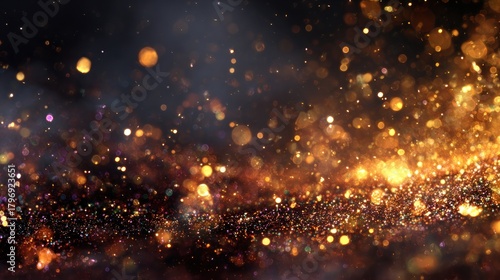 © Mustofa, Fototapeta premium Abstract golden bokeh background with glittering particles and blurred lights